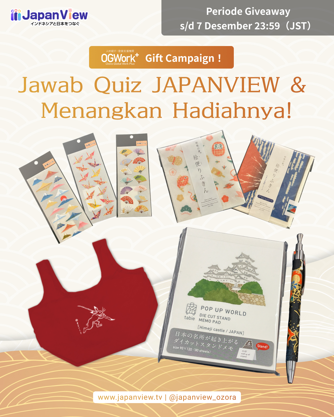 OGWork+ (Oozora Global Work Plus), perusahaan yang memperkenalkan tenaga kerja dengan Status Keahlian Khusus (Tokutei Ginou) dan sekaligus mengoperasikan ‘Japan View’, kembali mengadakan giveaway untuk yang ke-8 kalinya!