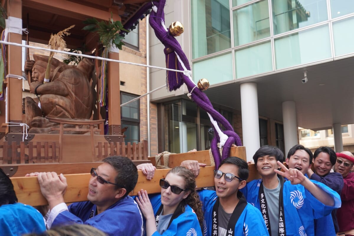 Fakhrul, seorang warga asli Jawa Tengah yang bekerja di Yamanashi sebagai pemagang teknis (ginou jisshu), juga terlihat mengenakan jaket happi dan mencoba membawa mikoshi. “Saya sudah berada di Yamanashi selama dua setengah tahun, tetapi ini pertama kalinya saya membawa mikoshi. Saya terharu melihat begitu banyak orang berpartisipasi, semuanya berbaris rapi, karena pemandangan seperti ini jarang terlihat di Indonesia. Meski akan kembali ke Indonesia dalam enam bulan, saya sangat senang bisa berpartisipasi dalam acara yang memungkinkan saya bisa merasakan nuansa Jepang yang terbaik,” katanya.