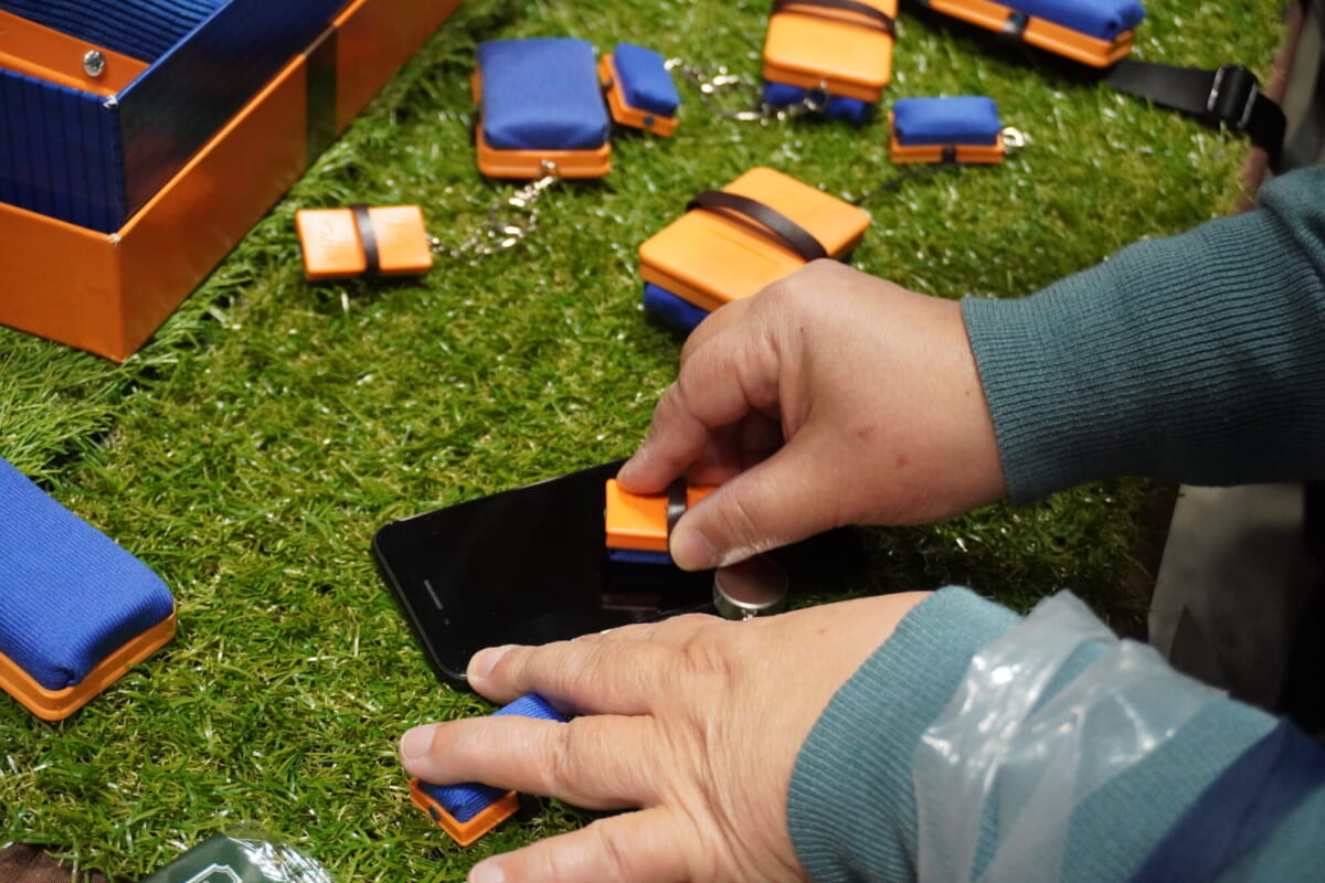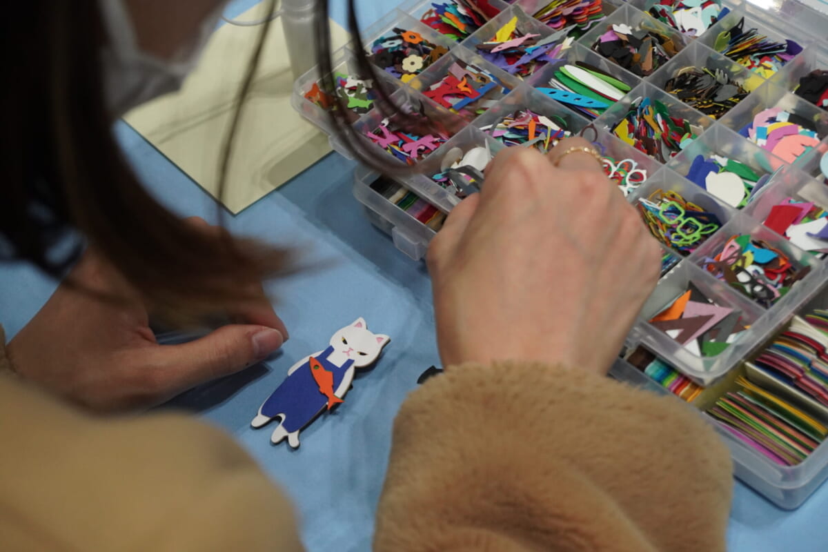 Di stan FLAT (Takada Orimono), yang menghadirkan barang-barang ‘Tatamiberi’ dengan motif alat tulis seperti gunting dan surat, juga diadakan workshop membuat tali selempang untuk ponsel. Melalui tema alat tulis, pengunjung bisa merasakan kerajinan tradisional Jepang secara langsung.
