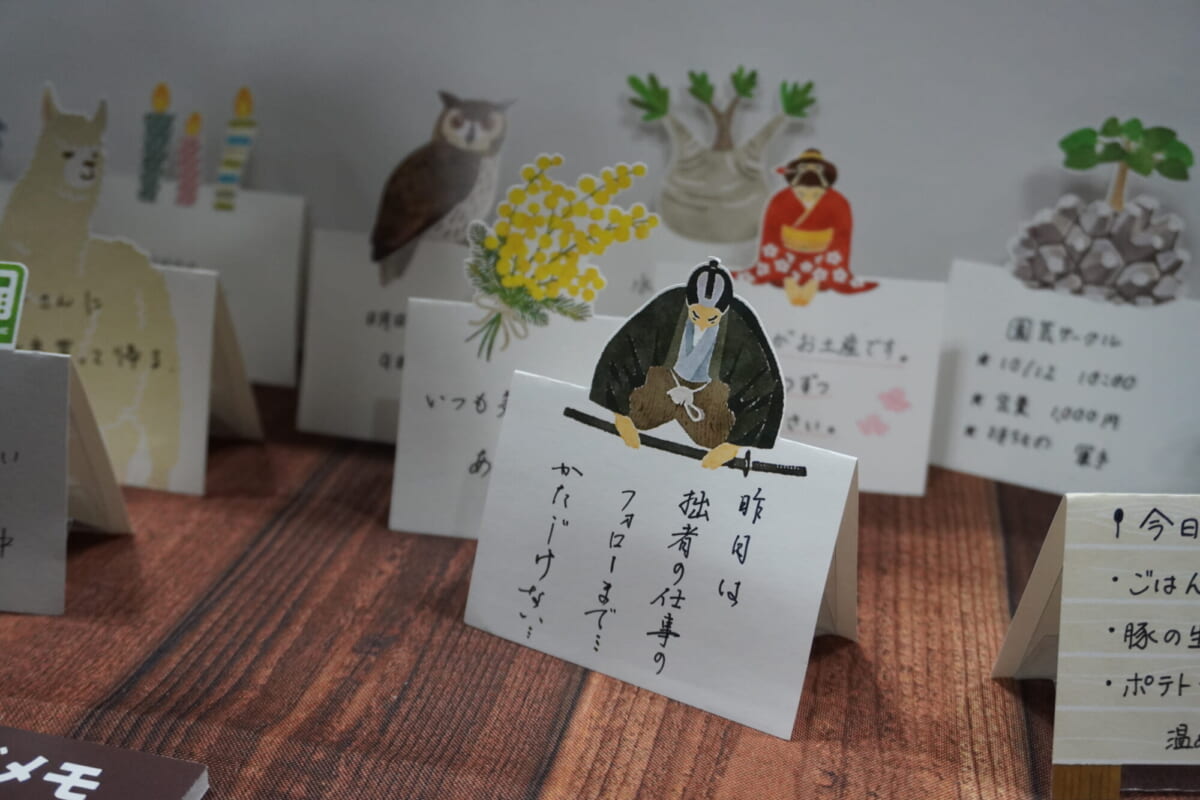 Masih ada banyak produk alat tulis lainnya yang akan mempercantik meja, seperti kalender meja dengan motif bento dan onigiri, hingga buku memo bergambar hewan yang tersembunyi di antara permen.