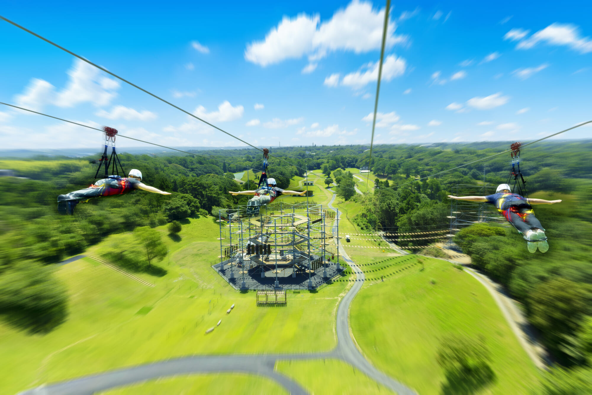 Ada 20 atraksi berbeda untuk dinikmati di alam bebas, termasuk meluncur dalam posisi tengkurang di zipline terpanjang di Jepang!