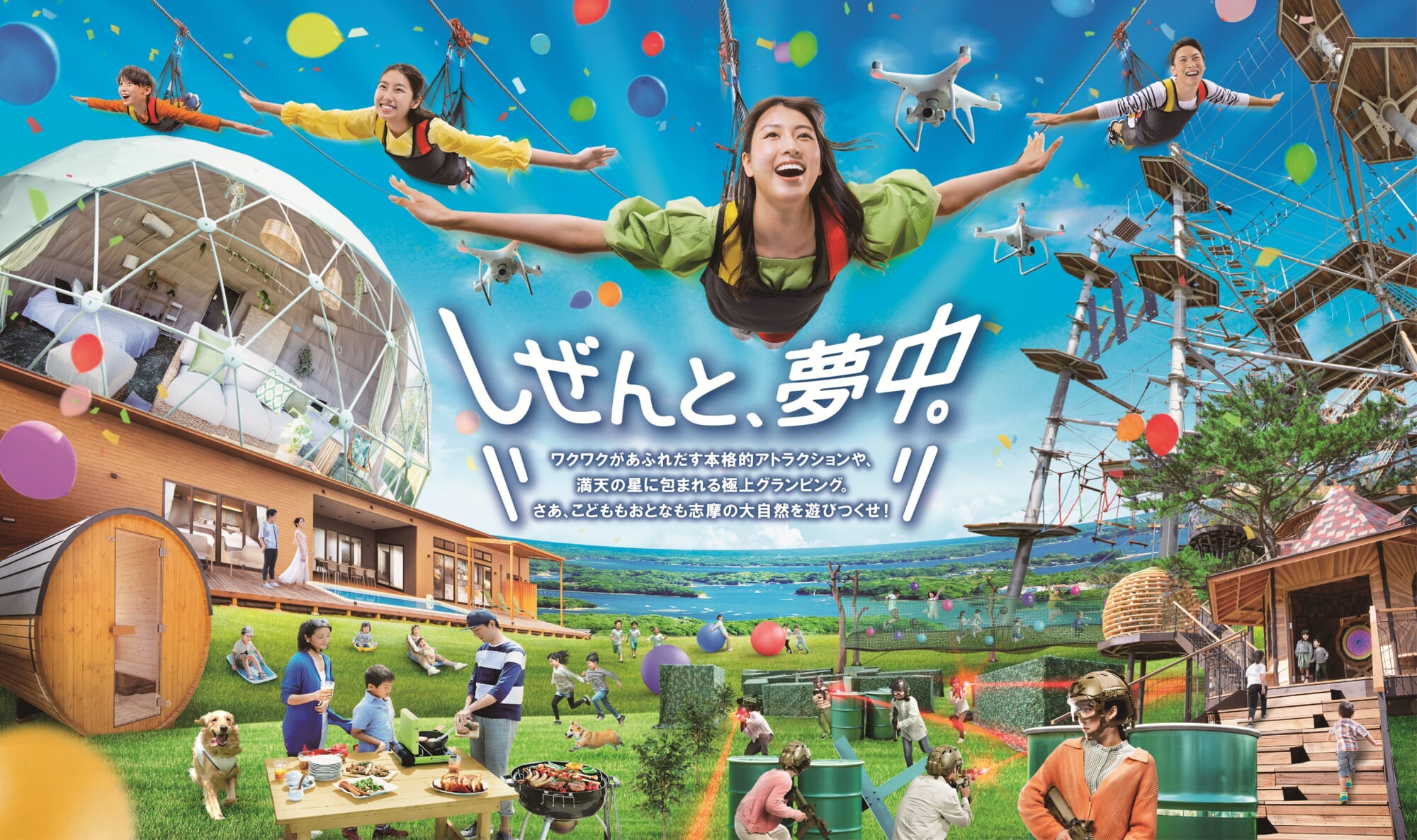 Kompleks resort yang menggabungkan glamping dan berbagai atraksi, tempat pengunjung bisa menikmati alam bebas Ise-Shima!