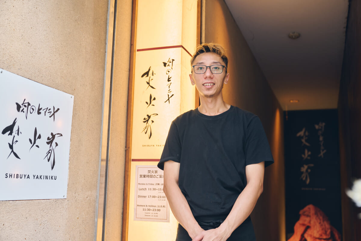 この夢を実現するため、2022年10月に“肉のヒマラヤ”で知られる焼肉店「焚火家 渋谷店」を運営する株式会社nomunoに入社。最初は、関連会社の株式会社エムアンドオペレーションが運営する羽田空港の和食居酒屋「すぎのこ」に配属され、日本の飲食店で働く基礎を学んだ。
