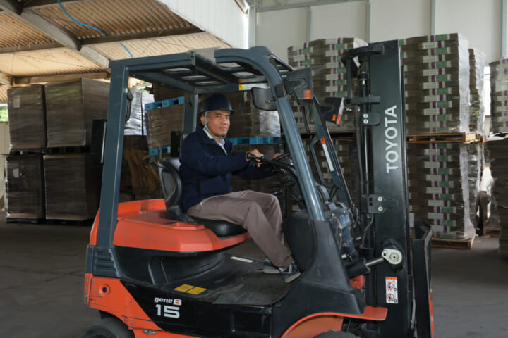 主な業務は、フォークリフトを使った農作物や資材の運搬、積み下ろし、取引先からの受注の管理など。注文が多い日や収穫が集中する時期には運搬する物資の量も増えて忙しくなるが、効率よく丁寧に作業を進めている。また、農作物の収穫がピークを迎える時期には、畑に出て収穫作業を手伝うこともある。10時・12時・15時の休憩時間にはお祈りを挟みながら、17時の退勤まで仕事に励んでいる。