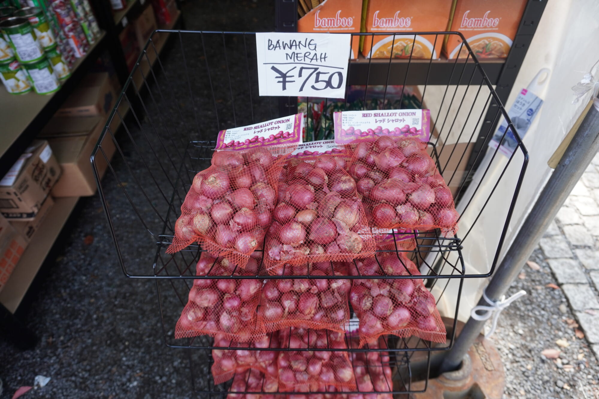ほかにも、ムスリム向け食品を20年以上扱う「株式会社二宮」によるハラール食材の販売や、バリ雑貨などの工芸品店、日イ両国の伝統衣装であるバティックや浴衣の試着ブースが登場。また、インドネシア料理でよく使われる小さな赤タマネギ「バワンメラ」を販売する店もありました。バワンメラはサンバル(辛味調味料)やナシゴレンなどに欠かせない食材ですが、日本ではなかなか手に入らないため、多くの来場者が購入していました。