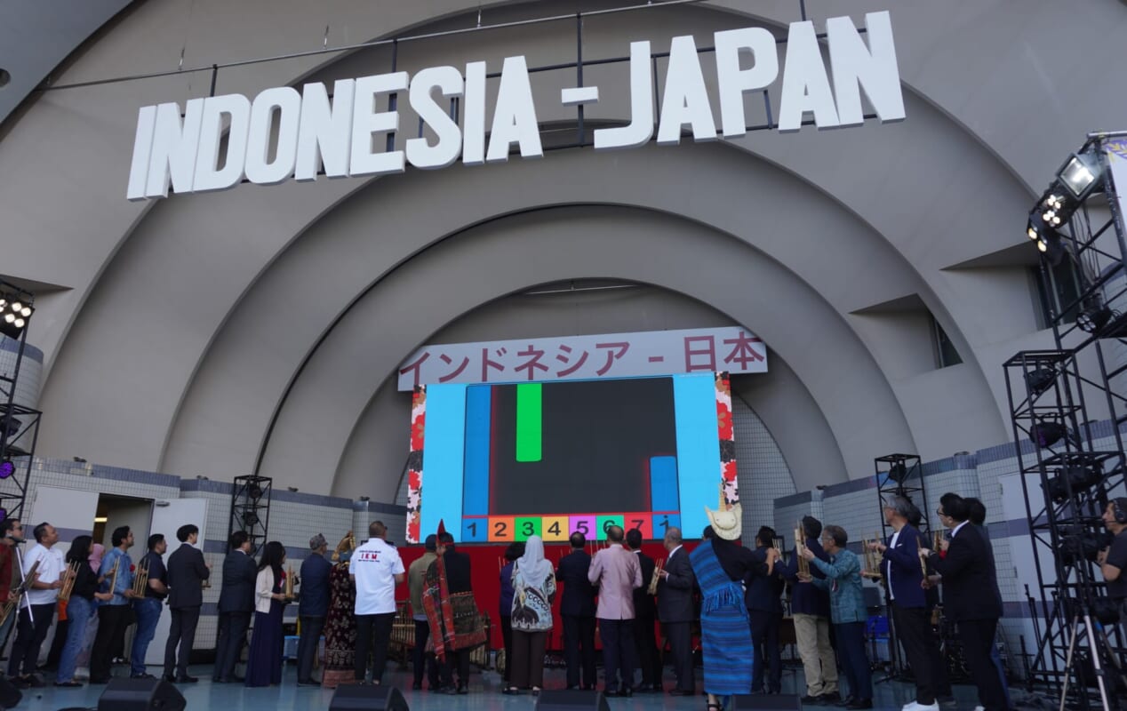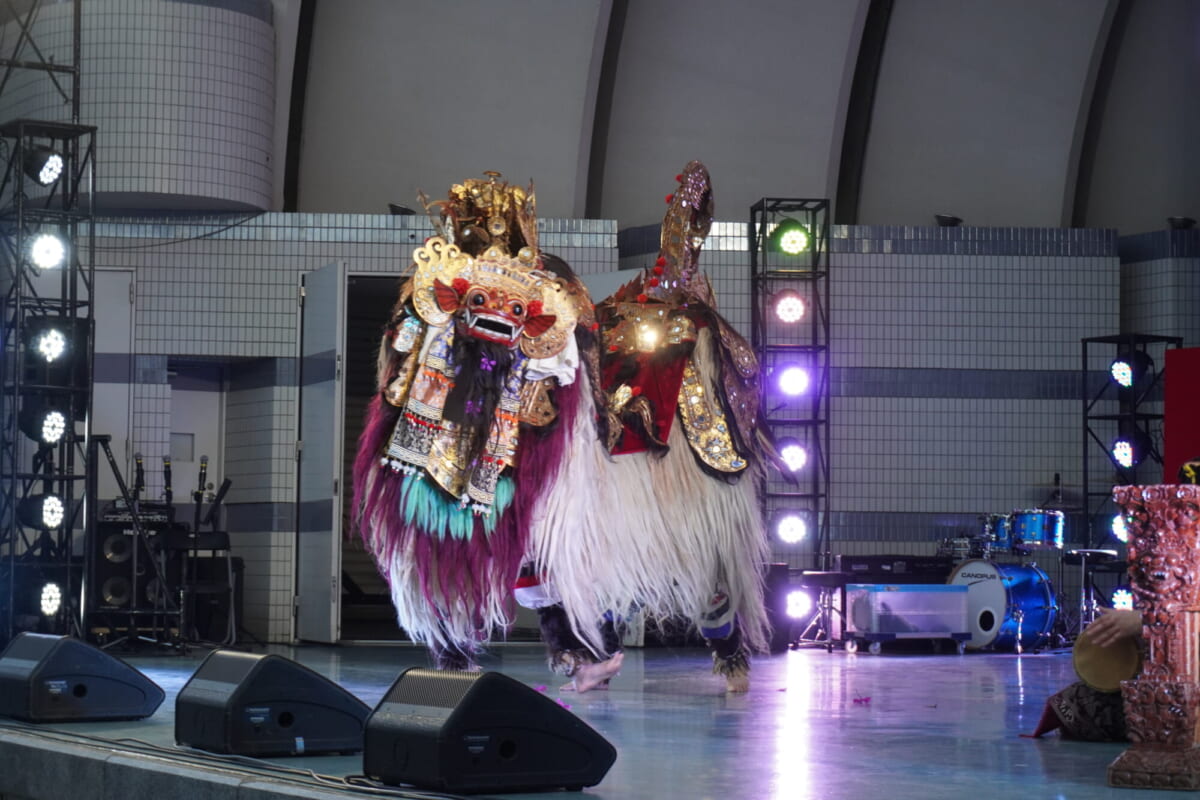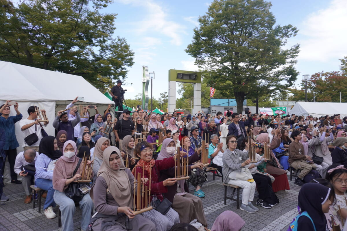 開会式には、駐日インドネシア共和国大使館の臨時代理大使、マリア・レナタ・フタガルン氏をはじめ、両国の交流に携わる関係者が登壇。観客全員に配られた伝統楽器「アンクルン」をみんなで演奏する企画も行われました。