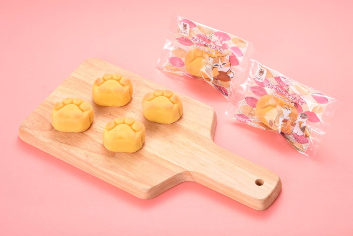 かわいい肉球型のすいーとぽてとです。やさしいお芋の甘さを味わえます。パッケージは「mofusand」とコラボレーションしたデザインで、全2種類です。 ※数量限定