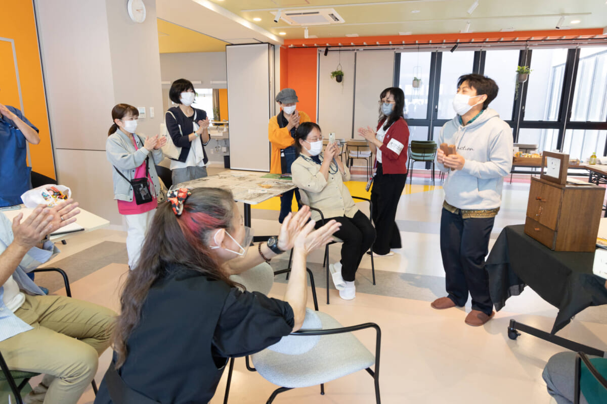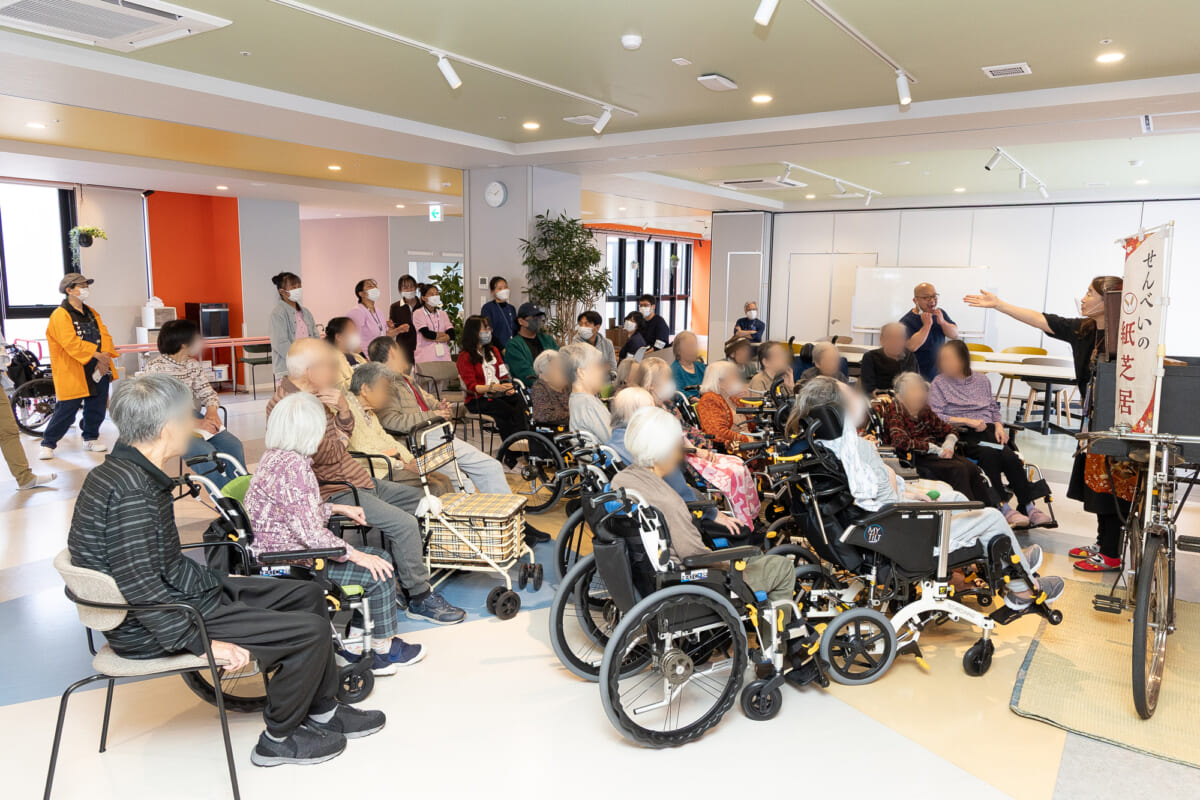 当日は施設利用者や地域住民、江戸川区内で働く外国人など約30名が来場しました。プロの紙芝居使・せんべいさんによる威勢のよい呼び声と軽快な拍子木の音が響き渡ると、会場は一気に活気づきました。