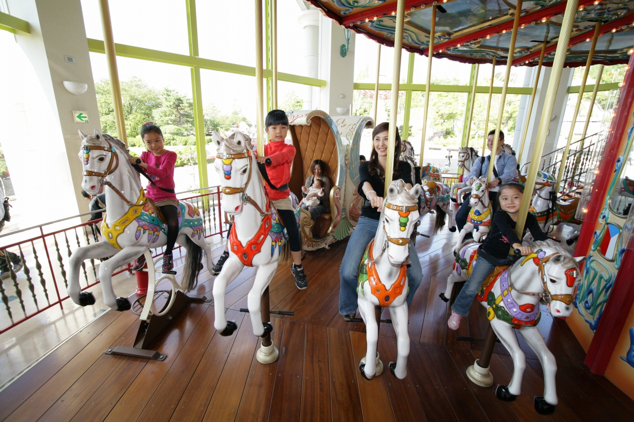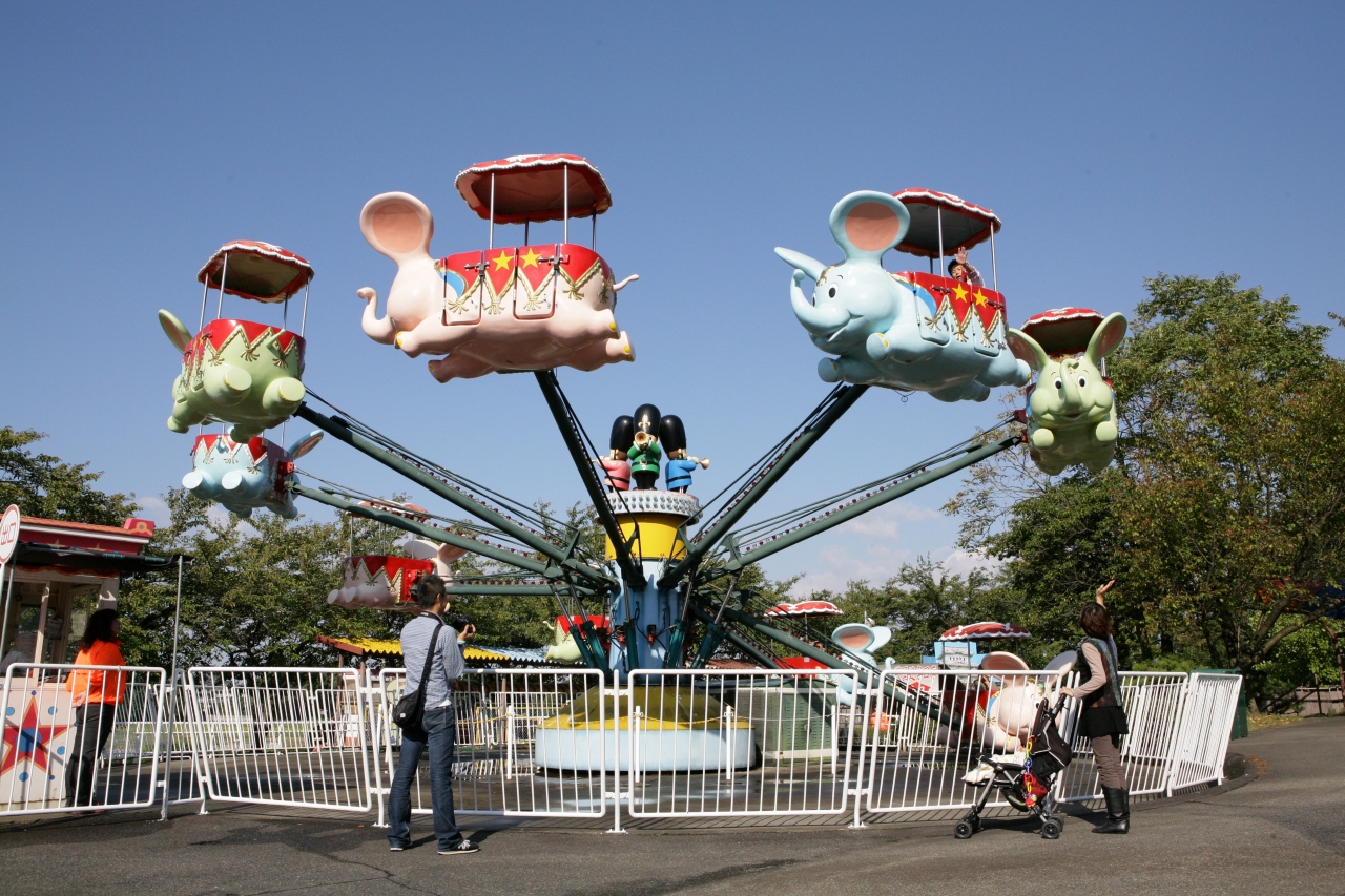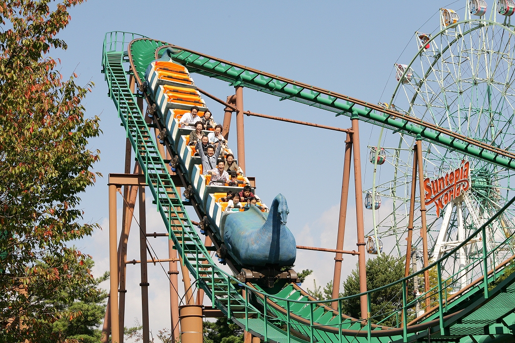 メリーゴーランドや大観覧車、恐竜ジェットコースターなど32種のアトラクションが楽しめる