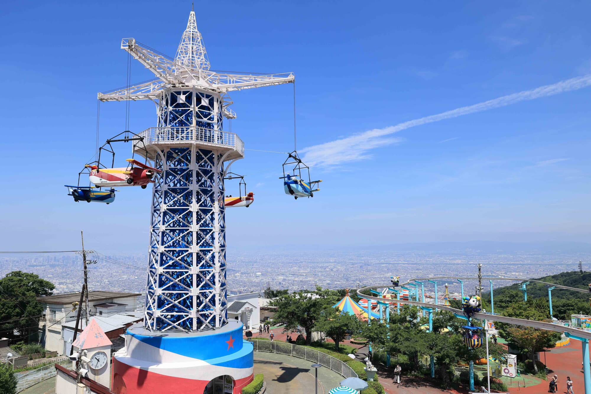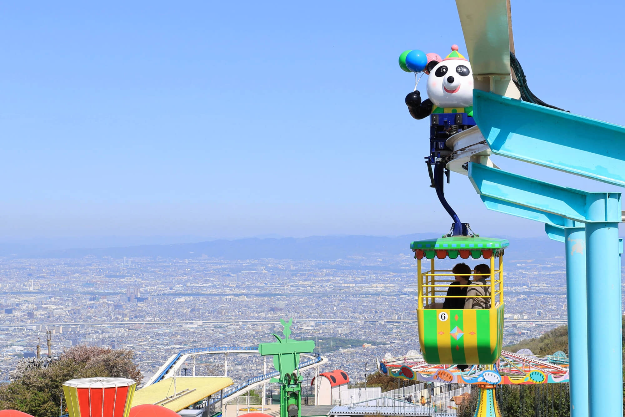 生駒山の山頂にある遊園地。「絶叫マシン」はありませんが「絶景マシン」があり、景色も楽しめる子どもから大人まで楽しめる遊園地です。